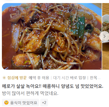 ✅ 메뉴 및 가격 : 해당 식당은 '찜전문' 식당으로 '메로찜'이 대표메뉴! 하지만 칼국수, 잔치국수, 해물파전등의 타 메뉴도 인기!