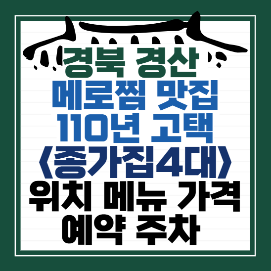 <동네한바퀴> 312회에 나오는110년 된 종갓집 고택 식당은 경북 경산에 위치한 메로찜 맛집 '종가집4대' 식당입니다. '이번 글에서는 '종가집4대'의 위치, 운영 정보, 메뉴, 가격, 주차 등에 대해 정리해보겠습니다.
