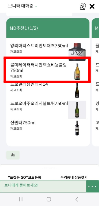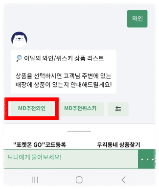 ✅ 우리동네 상품찾기 → '와인' 검색 → 'MD 추천와인' 선택
