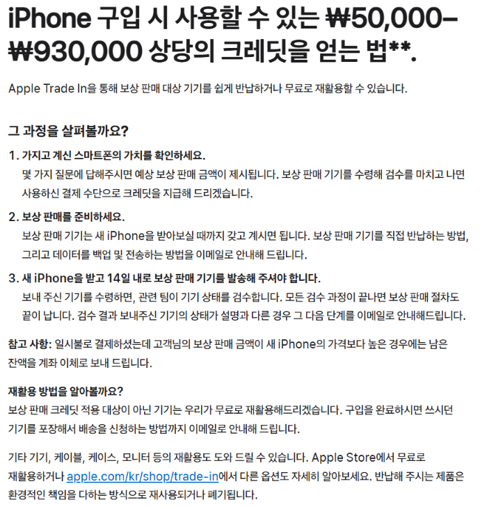 - 해당 크레딧을 활용해 새 아이폰 구입 후 기존 기기 애플 매장으로 반납