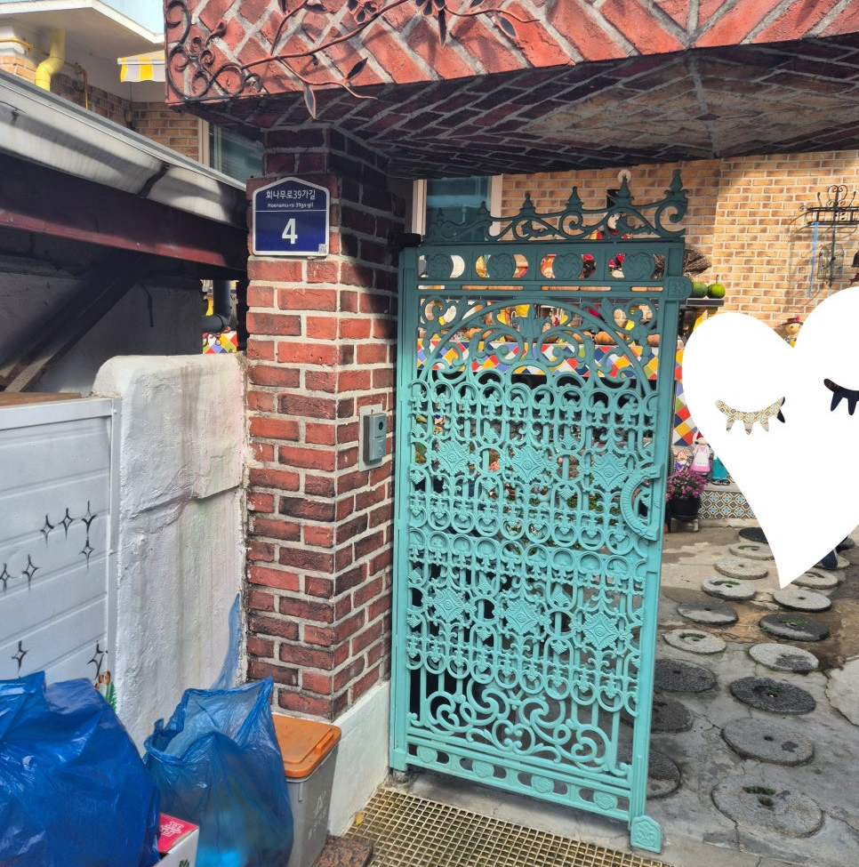 (헷갈린다면! 꽃집 앞에서 내려서 맞은편 계단으로 내려가서 에메랄드 색? 하늘색? 대문집!)