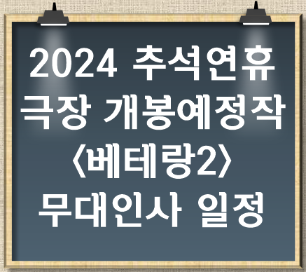 지금까지 2024년 추석 연휴 극장 개봉 예정작에 대해 정리해보았습니다. 다양한 영화들과 함께 가족, 친구, 연인과 즐거운 시간 보내시기 바랍니다!